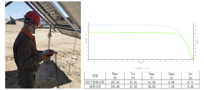公司多年来持续对75兆瓦光伏电站进行了跟踪测试。现场将各设备的检测功能有机地结合在一起,即利用无人机搭载红外成像设备实现电站大面积、高效率检测,多路测试仪实现支路的电流检测,便携式I-V测试仪、手持式红外成像仪、EL测试仪等检测设备,实现具体到每一块组件的功率、热斑、隐裂检测,实现了由面到点逐级检测,发电性能、质量的系统、全面检测。应用自主开发的光伏电站检测信息管理系统进行现场检测数据的标识、存储,利用组件标识、数据库对标识过的数据统一建档入库,对建档的组件随时可以进行测试,从而为组件运行期内的跟踪检测提供数据调取、比对条件。针对具体的问题提出整改措施,通过技改提升电站能效,提高发电量。